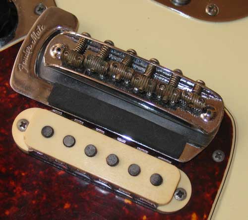 One thing that did surprise me was that the guard had shrunk over the 6 months it had been off the body, which sort of surprised me as I thought only the earlier nitro guards shrunk (any one have any ideas on this- huh?) An hour of careful filing of the bridge leg holes and the PUP selector plate hole (and a few beers while watching Veronica Mars on TV Wink) and the guard fitted snugly.